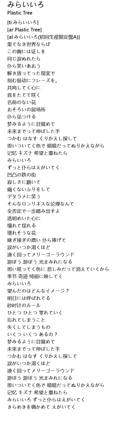 | [03:37.79] | みらいいろ ずっと仆らはえがいてく |