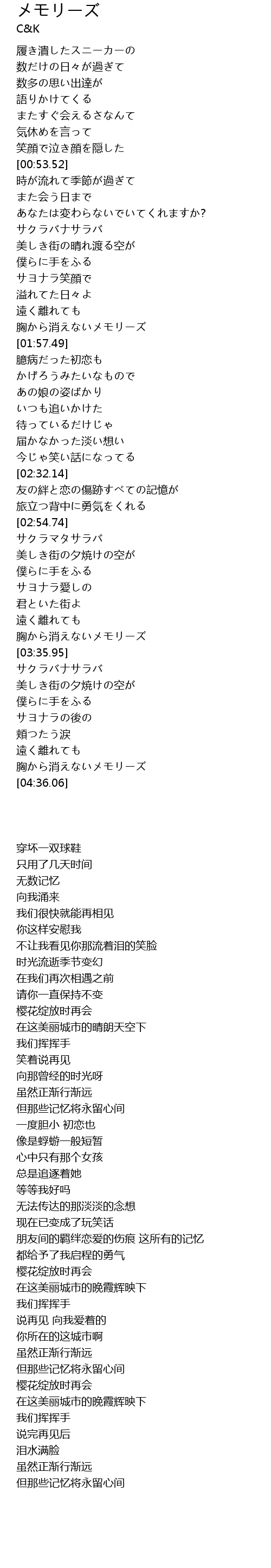 | [02:35.17] | 朋友间的羁绊恋爱的伤痕 这所有的记忆 |