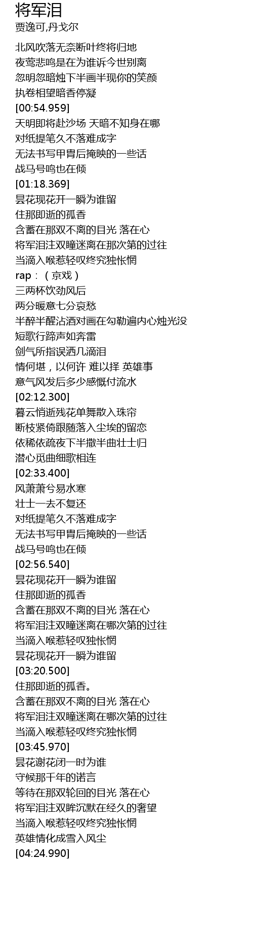 | [04:01.260] | 将军泪注双眸沉默在经久的奢望 |