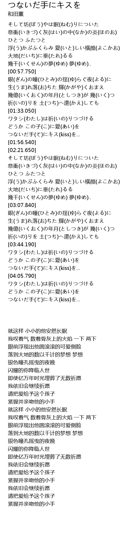 | [04:13.710] | どうか この子(こ)に愛(あい)を |