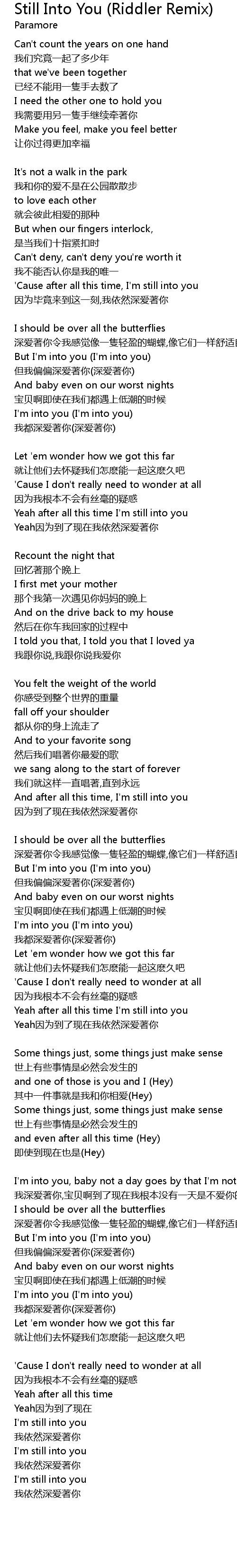 | Yeah yīn wèi dào le xiàn zài wǒ yī rán shēn ài zhe nǐ | |
