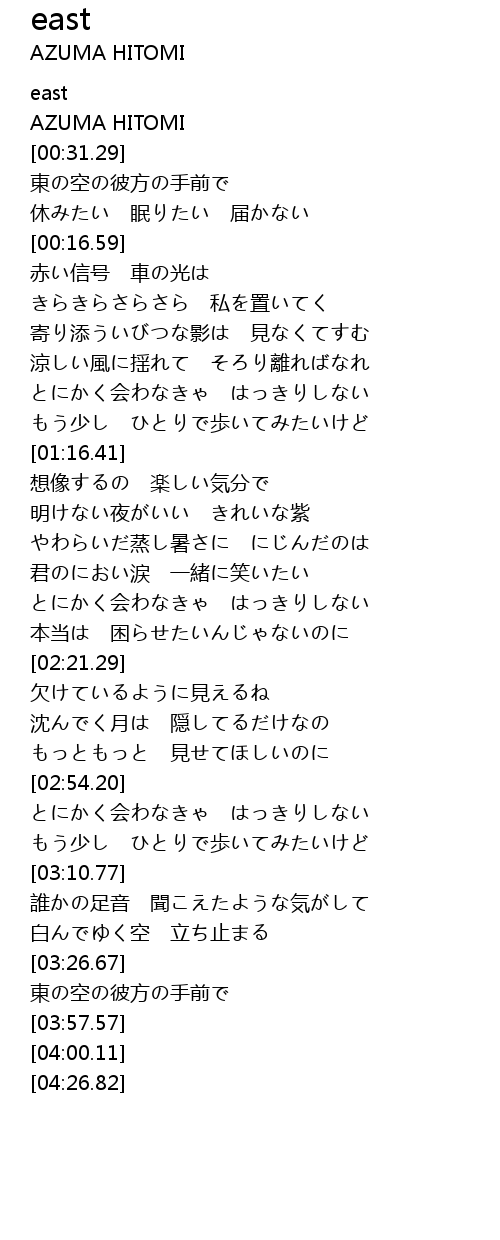 | [00:00.79] | 東の空の彼方の手前で |
