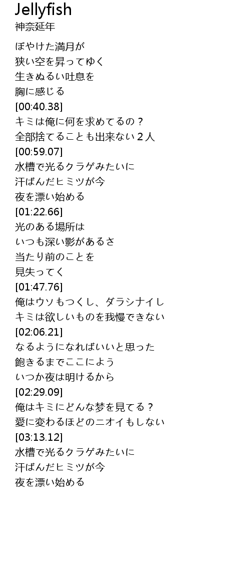 | [01:00.38] | 水槽で光るクラゲみたいに |