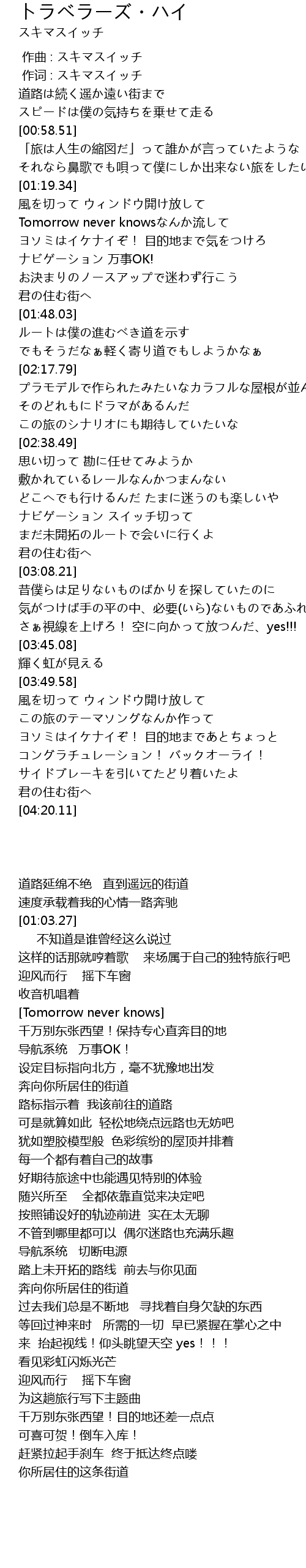 | [03:56.33] | 为这趟旅行写下主题曲 |