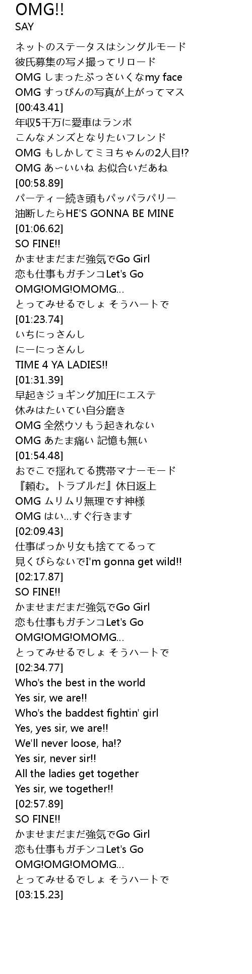 | [03:07.51] | OMG!OMG!OMOMG… |