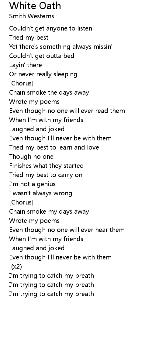 Chain smoke my days away |