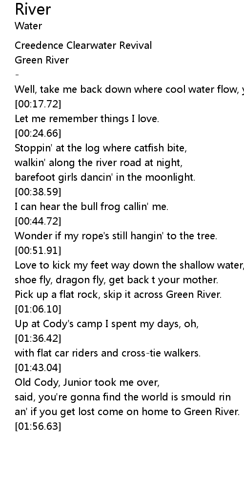 | [01:01.79] | Pick up a flat rock, skip it across Green River. |