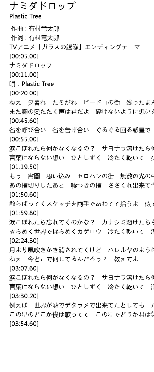 | [00:03.00] | TVアニメ「ガラスの艦隊」エンディングテーマ |