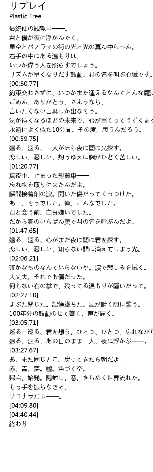 | [00:45.35] | ごめん、ありがとう、さようなら、 |