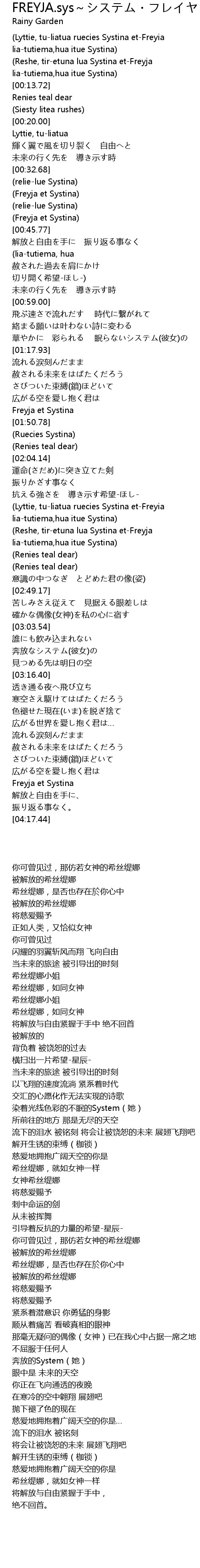 | [02:21.97] | Lyttie, tuliatua ruecies Systina etFreyia |