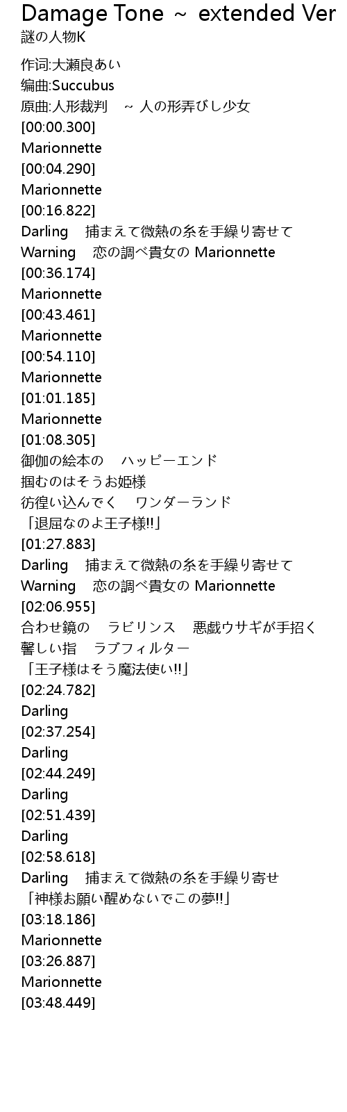 | [00:00.280] | 原曲:人形裁判 ~ 人の形弄びし少女 |