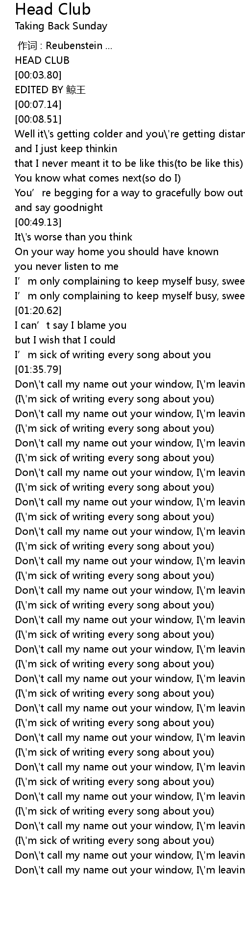 | [02:33.61] | (I\'m sick of writing every song about you) |