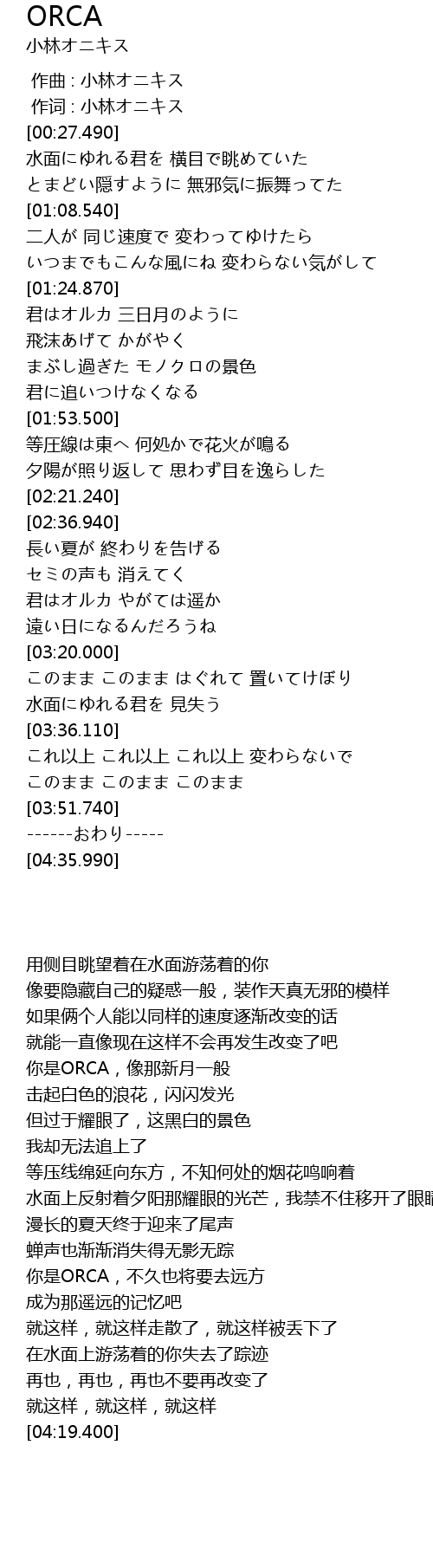 | [03:07.810] | 君はオルカ やがては遥か |
