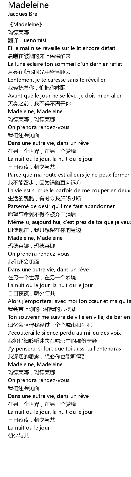 | 歌曲 | Madeleine |