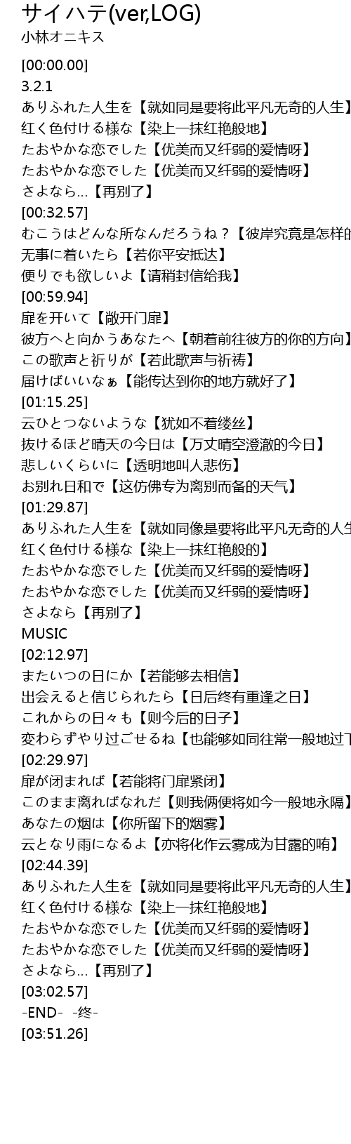 | [02:58.74] | さよなら…【再别了】 |