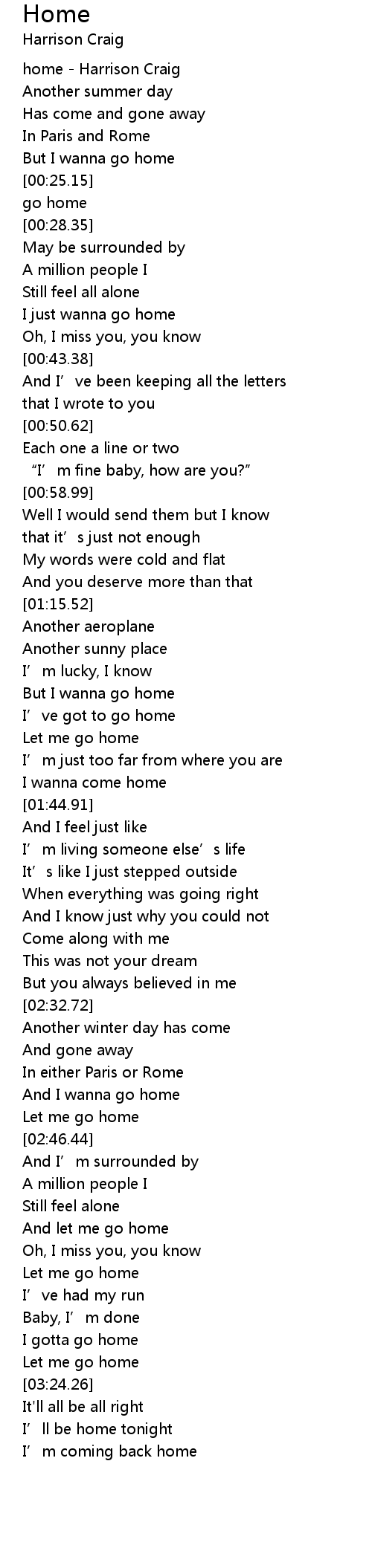 | [02:39.70] | And I wanna go home |