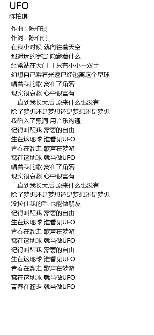| [01:33.760] | 窝在这地球 就当做UFO |
