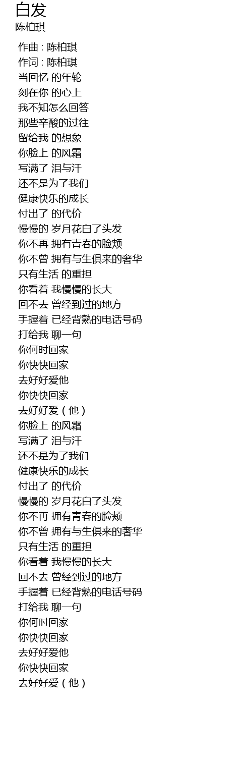 | [03:12.270] | 慢慢的 岁月花白了头发 |