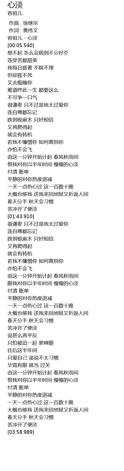 | [00:00.800] | 容祖儿 - 心淡 |