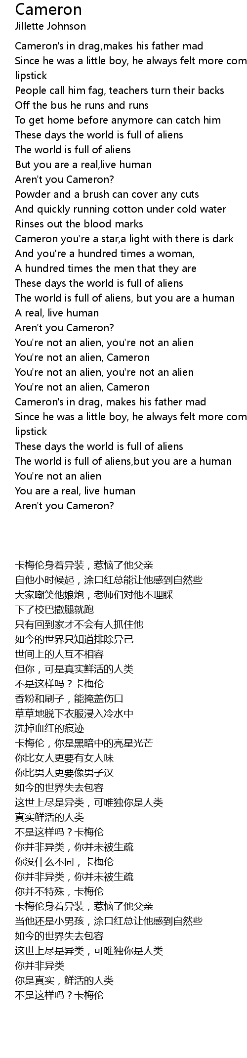 You're not an alien, Cameron |