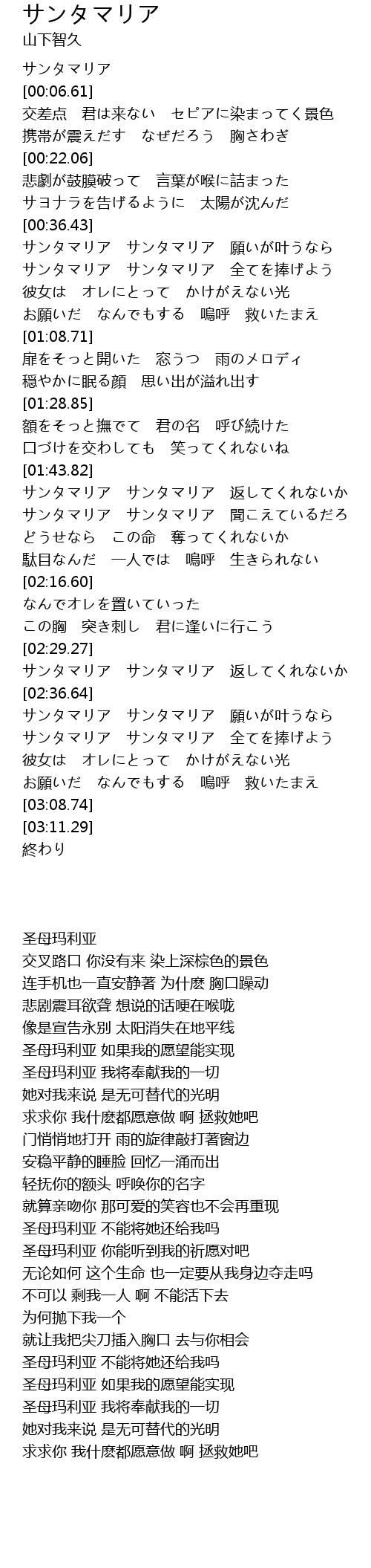 | [02:29.39] | サンタマリア サンタマリア 返してくれないか |