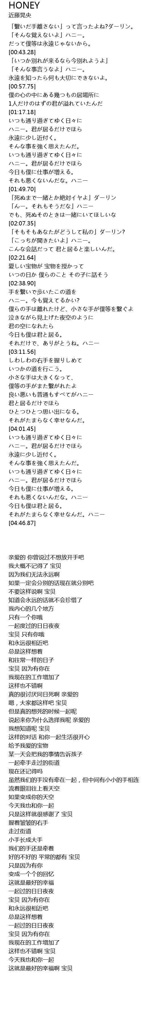 | [04:36.83] | それがたまらなく幸せなんだ。ハニー |