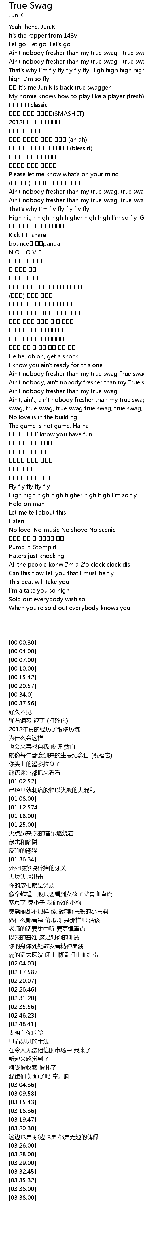 | [02:35.56] | Ain' t, ain' t, ain' t nobody fresher than my true swag, true swag True swag, true swag, true swag true swag, true swag, true swag |