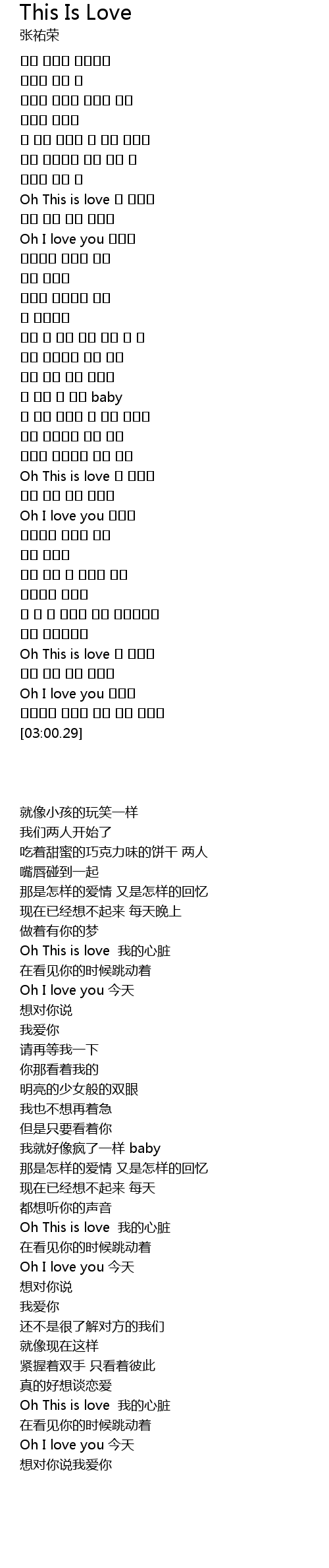 | [01:54.19] | Oh This is love 我的心脏 |