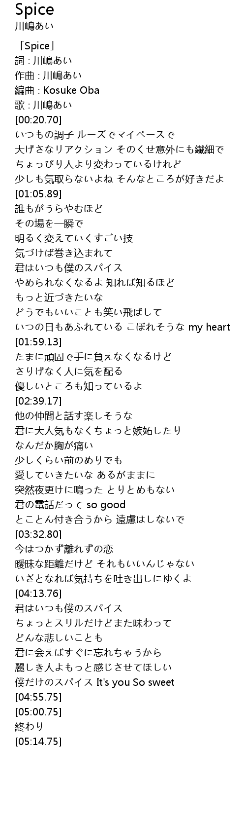 | [00:00.70] | 「Spice」 |