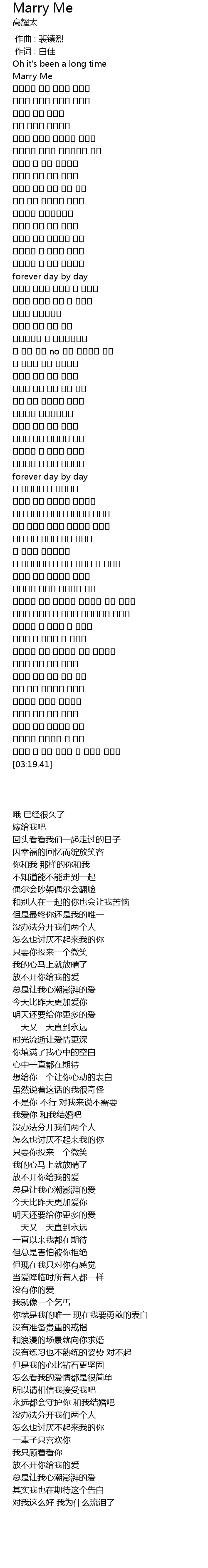 | [01:41.17] | 我爱你 和我结婚吧 |