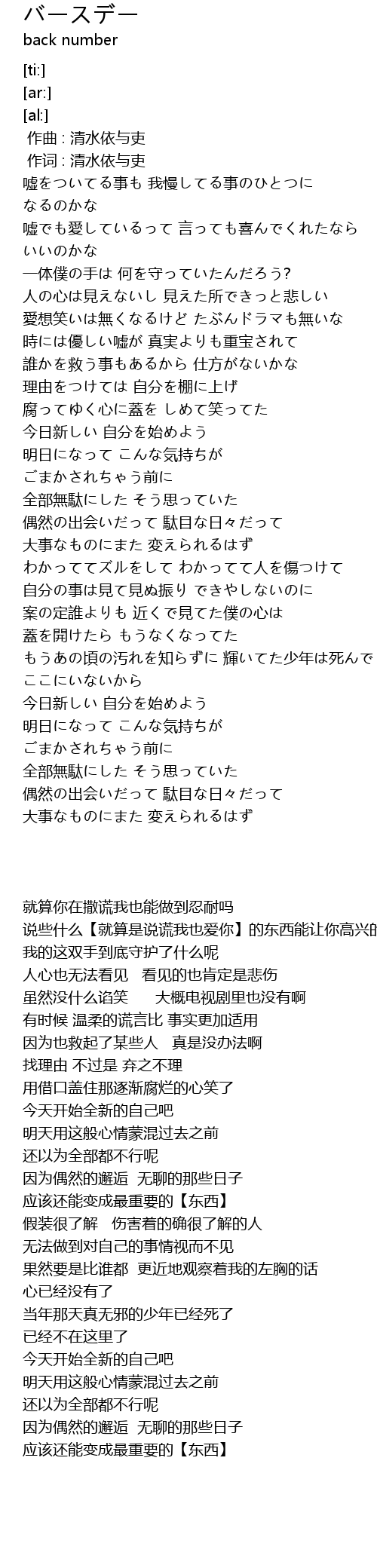 | [00:00.00] | 作曲 : 清水依与吏 |