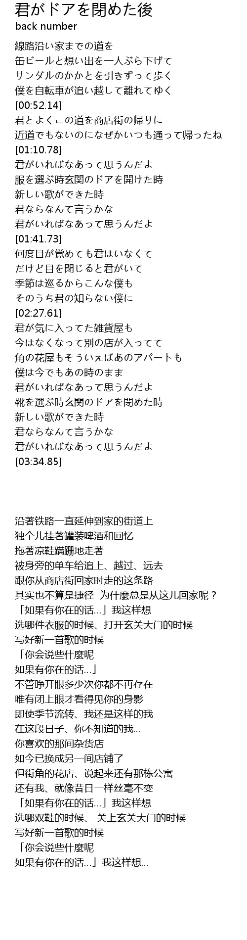 | [03:01.47] | 靴を選ぶ時玄関のドアを閉めた時 |