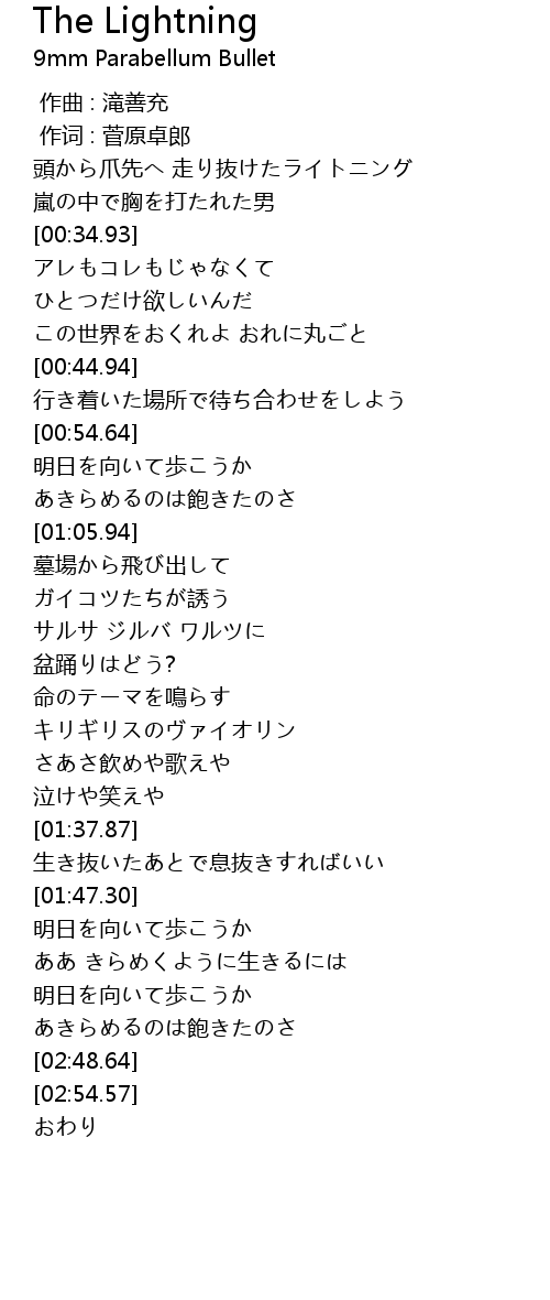 | [01:38.76] | 生き抜いたあとで息抜きすればいい |