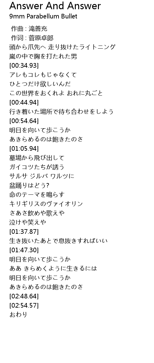 | [01:38.76] | 生き抜いたあとで息抜きすればいい |