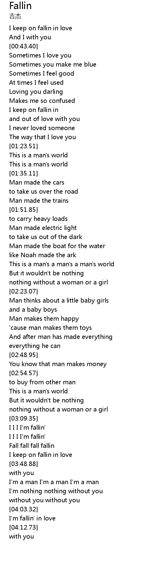 | [03:30.56] | Fall fall fall fallin |