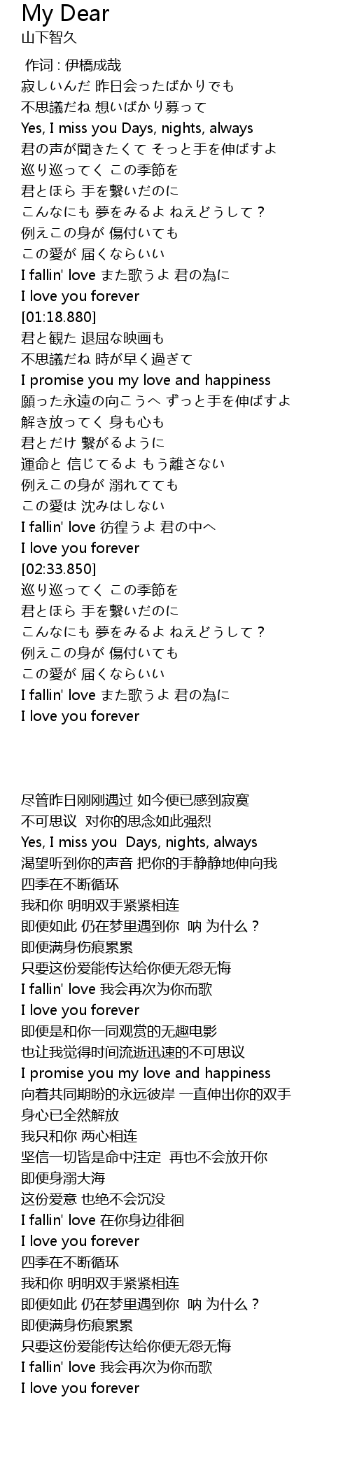 | [03:18.950] | I fallin' love また歌うよ 君の為に |
