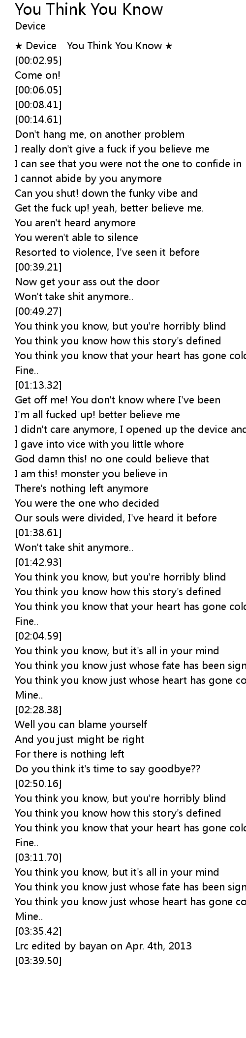 | [00:01.00] | ★ Device - You Think You Know ★ |