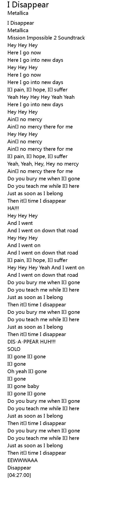 | [04:26.00] | Disappear |