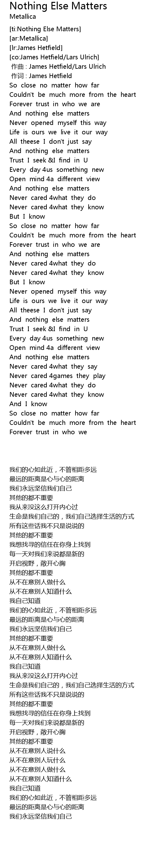| [04:22.34] | And nothing else matters |