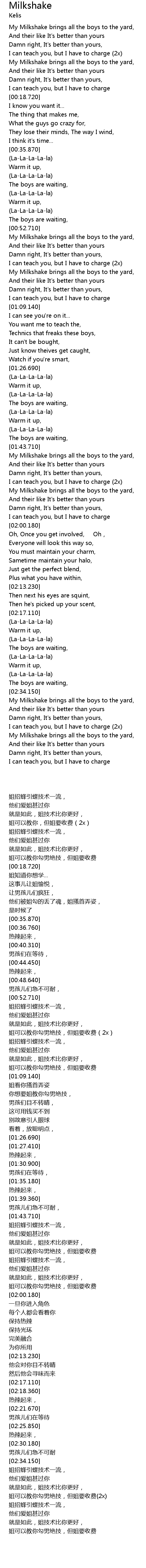 | [00:10.640] | My Milkshake brings all the boys to the yard, |