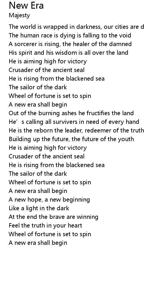 | A new era shall begin | |