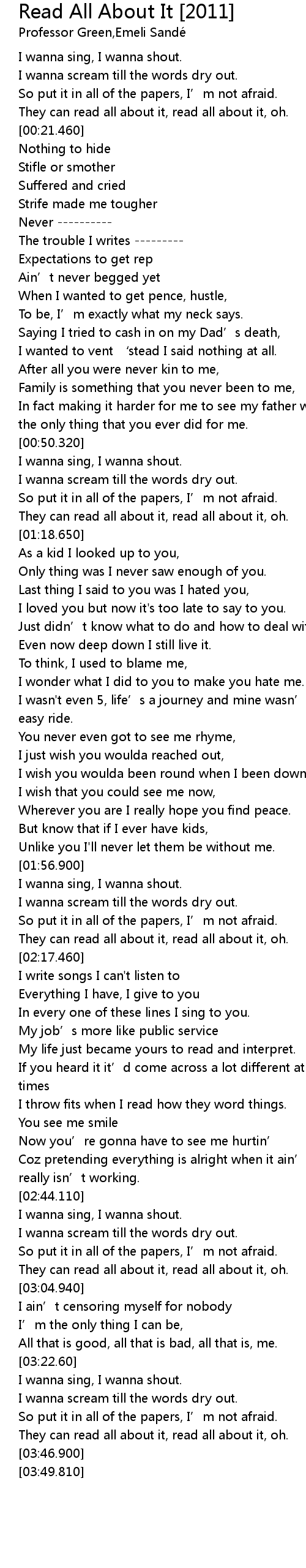 | [03:38.130] | They can read all about it, read all about it, oh. |