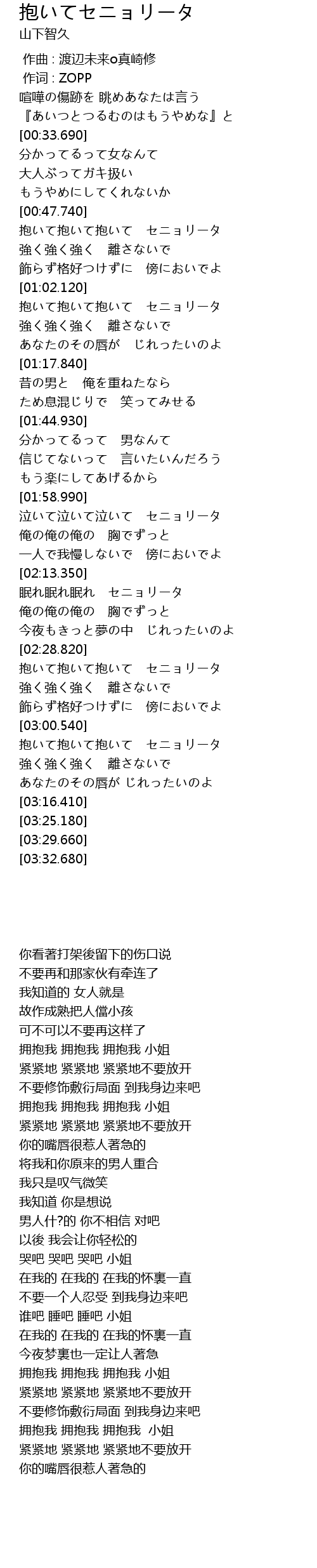 | [03:01.100] | 抱いて抱いて抱いて セニョリータ |