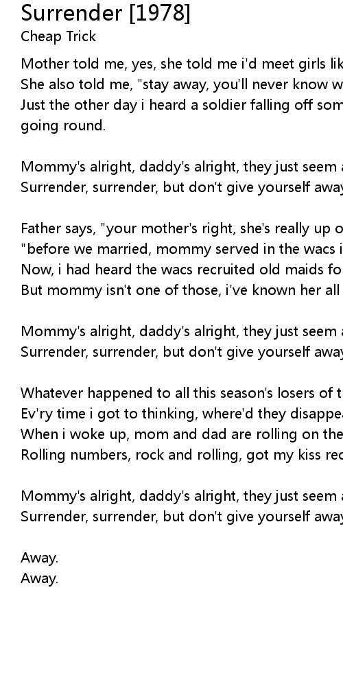 Surrender, surrender, but don't give yourself away, ay, ay, ay. |