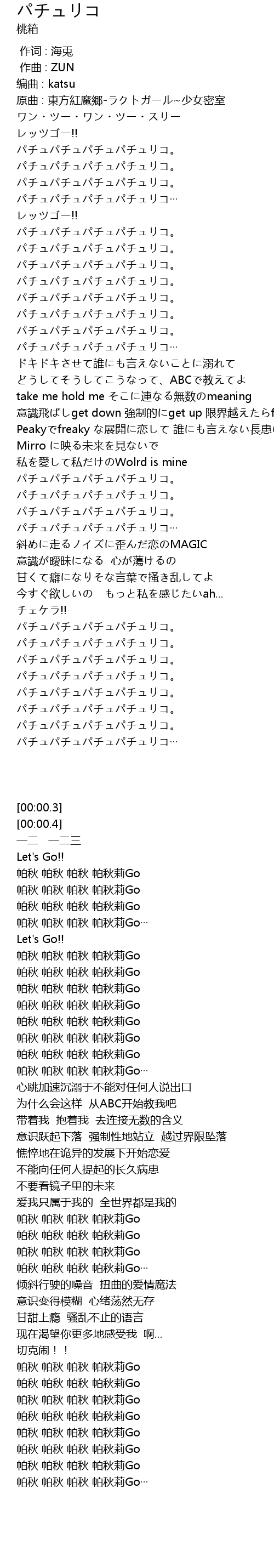 | [02:53.90] | 帕秋 帕秋 帕秋 帕秋莉Go |