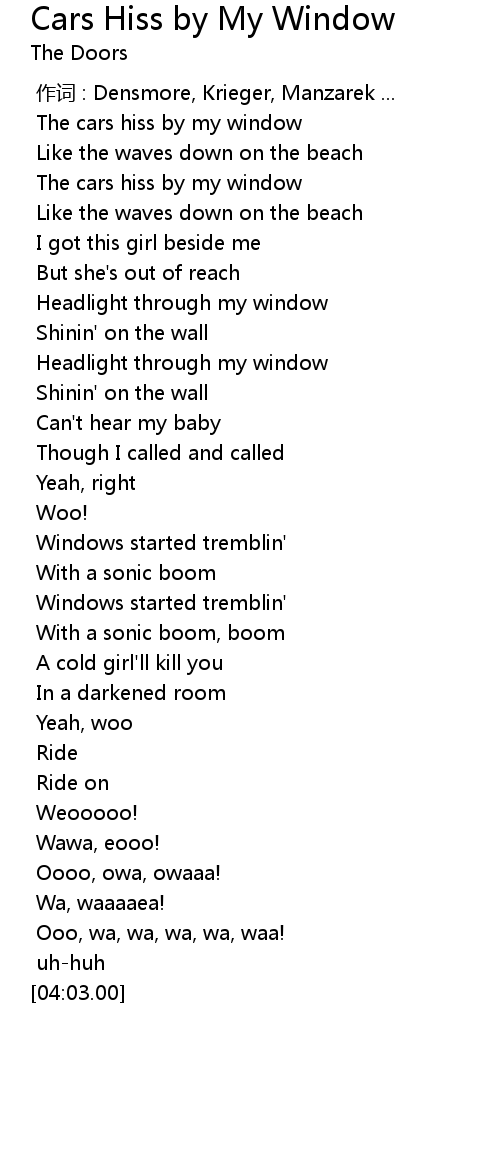 | [00:00.00] | 作词 : Densmore, Krieger, Manzarek ... |