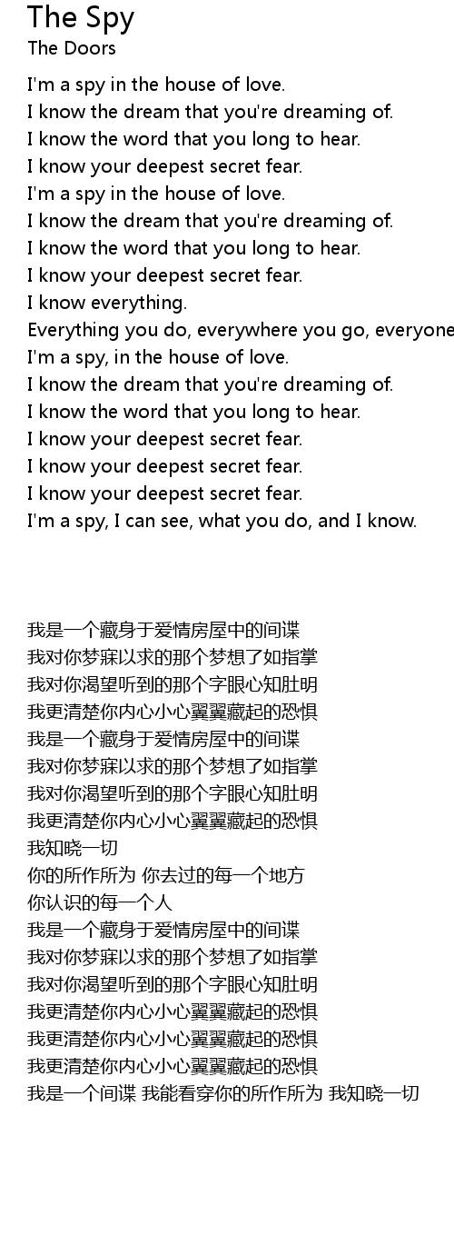 I'm a spy, in the house of love. |