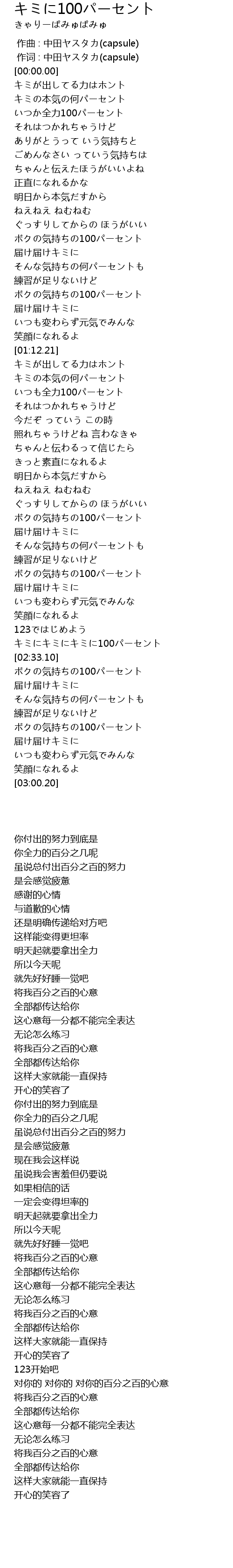 | [02:47.80] | ボクの気持ちの100パーセント |