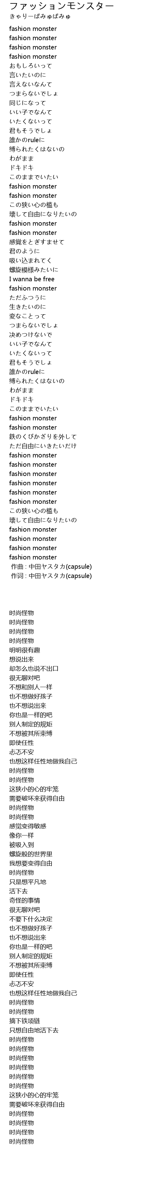 | 歌曲 | ファッションモンスター |