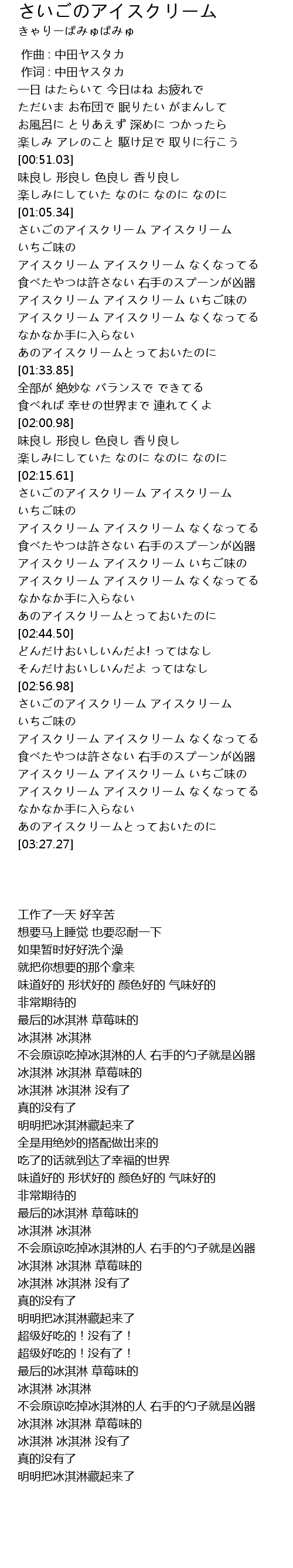 | [02:59.18] | さいごのアイスクリーム アイスクリーム いちご味の |